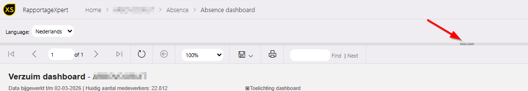 Zie je bovenstaande opties niet? In sommige rapportages staan de parameters automatisch ingeklapt. Klik dan op het grijze pijltje om het parametermenu uit te klappen: