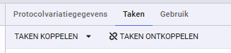 Je kunt taken toevoegen aan het protocol door in beheer naar dienstverlening en vervolgens naar protocolbeheer te gaan. Hier kies je de protocolvariatie die je wilt wijzigen. Via het kopje "taken" is het mogelijk om taken te koppelen ( toe te voegen) en taken te ontkoppelen ( taken verwijderen). Taken ontkoppelen kan per stuk of in bulk.