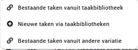 Wanneer er wordt gekozen om taken toe te voegen, is er keuze uit 3 mogelijkheden: