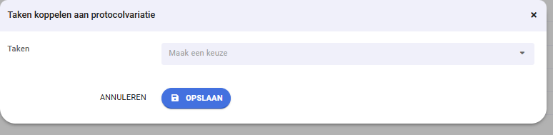 Wanneer je op Protocolvariatie klikt, verschijnt de takenlijst.