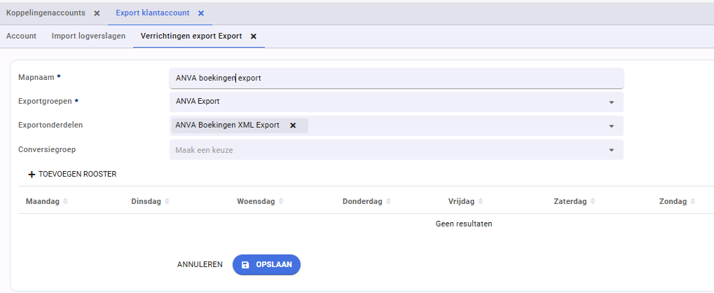 Binnen de exportgroep 'ANVA Export' is er een mogelijkheid om een export te maken van boekingen.