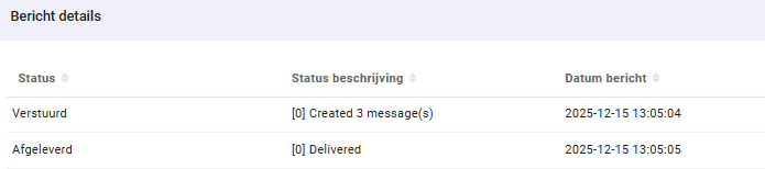 Om inzicht te geven in verstuurde (SMS) berichten en hun status vanuit de Xpert Suite, is het mogelijk om via beheer deze status op te zoeken.