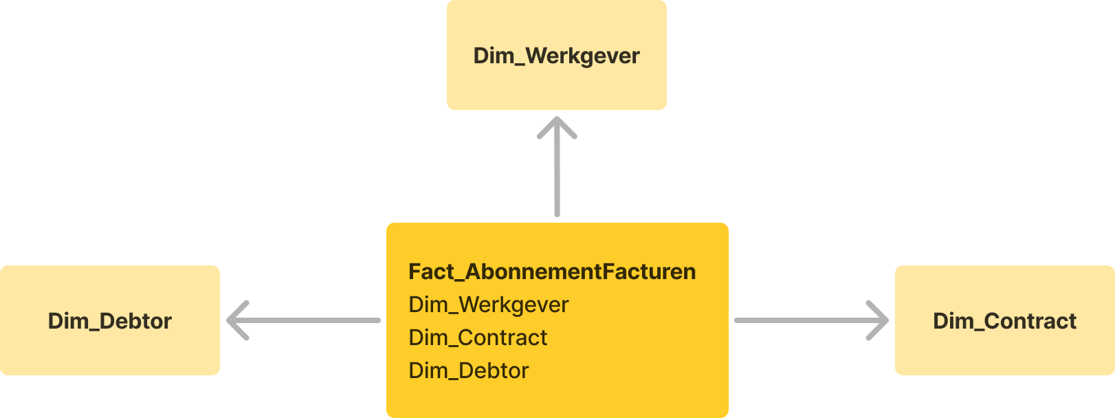 - Fact_AbonnementFacturen: Bevat de grondslagen van de abonnementen.
