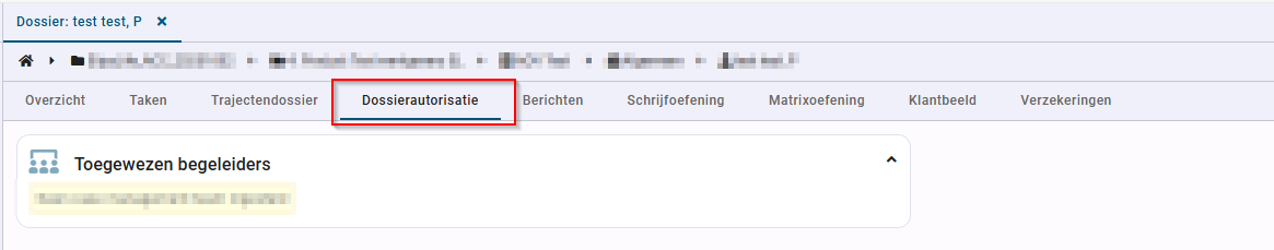 Het overzicht toont de toegewezen begeleiders voor dit dossier.