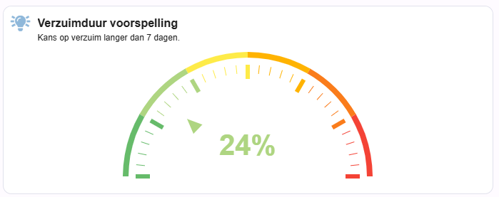 Kort Lang maakt een inschatting of een dossier hersteld binnen een X aantal dagen. De X kan variabel worden ingesteld. Het resultaat is een inschatting of het dossier de X gaat passeren (ja/nee) en met welke zekerheid (percentage). Dit gaat altijd over lopende verzuimmeldingen.
