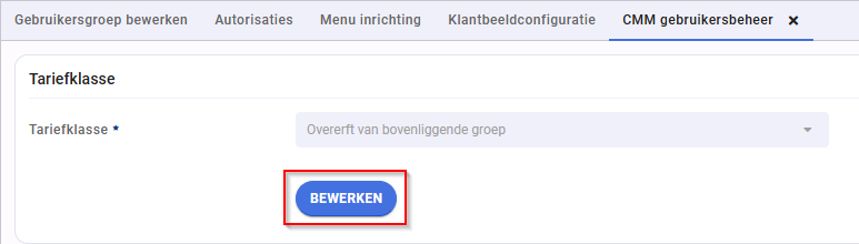 - Klik op "BEWERKEN" om de tariefklasse aan te passen of toe te voegen aan de gebruikersgroep.